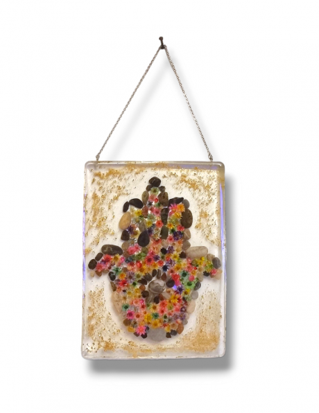 עשויה מיציקת אפוקסי ,חלוקי נחל ופרחים יבשים, שרשרת