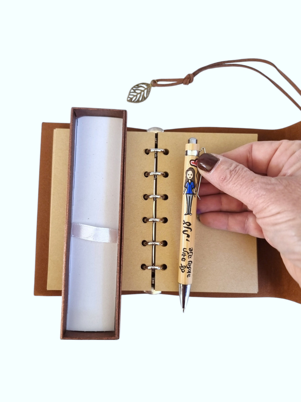 סט של עט מעוצב בהתאמה אישית  ופנקס איכותי מדמוי עור