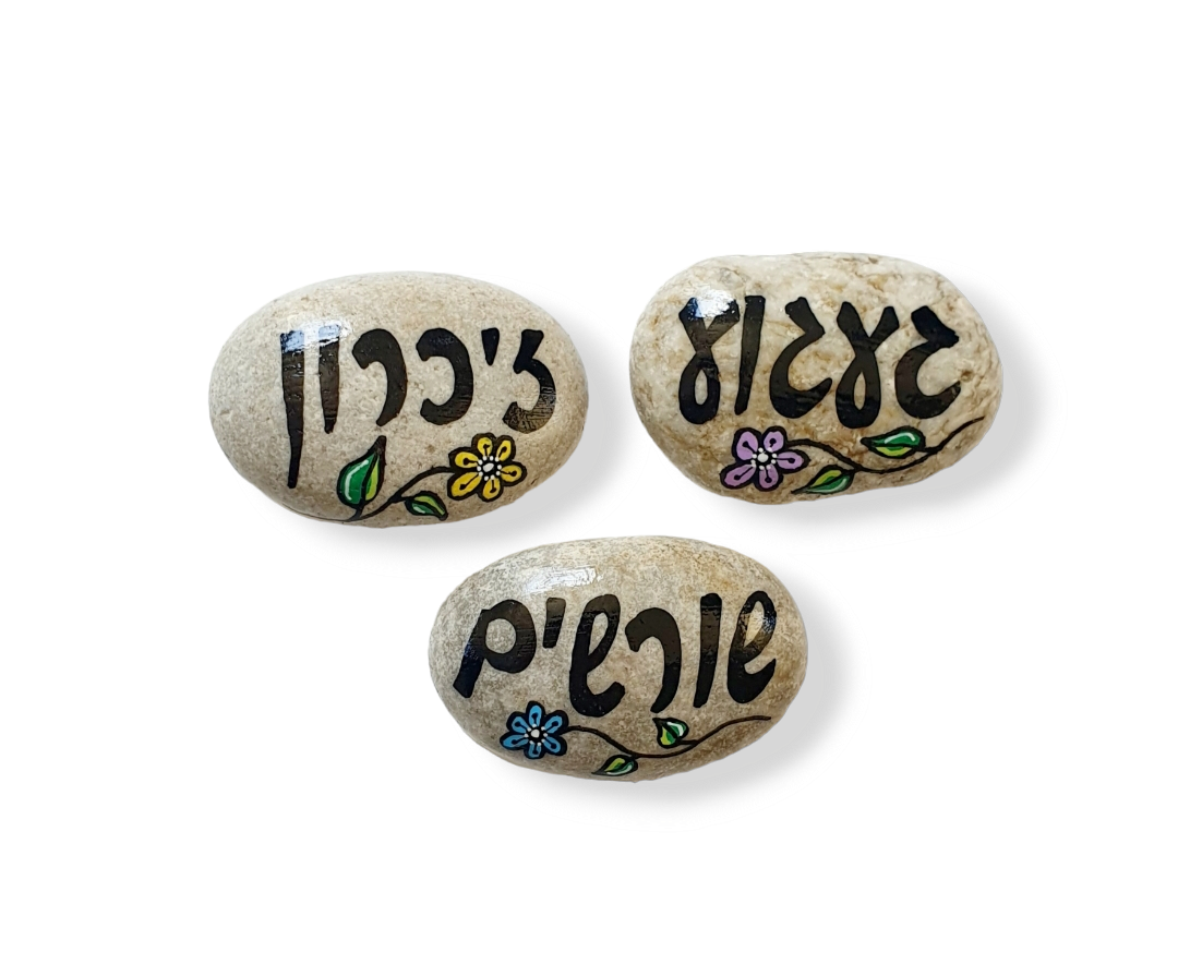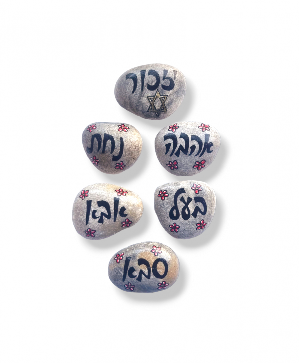 אבני זיכרון והנצחה בעבודת יד, המצוירות על חלוקי נחל טבעיים. כל אבן נוצרת בקפידה והופכת ליצירה אישית ומרגשת, המעניקה מקום של כבוד לזיכרון, לאהבה ולרגעים שחשוב לשמור קרוב ללב.
