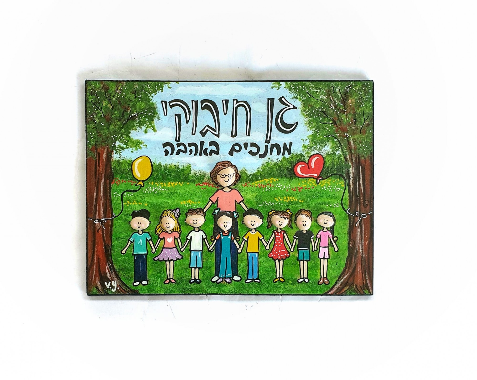 שלט לגן ילדים בהתאמה אישית 9 דמויות כולל חלוקי נחל.
