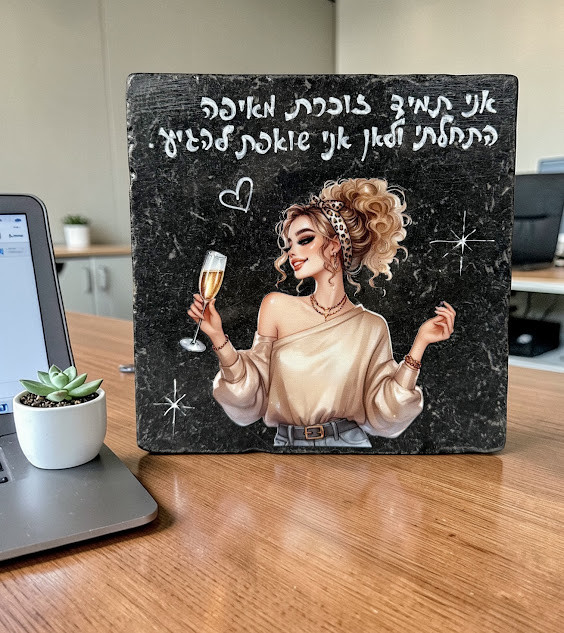השילוב המושלם בין החוזק והעוצמה של אבן השיש לבין עדינות המילה הכתובה. יצירה ייחודית מהסטודיו שלי, המשלבת הדפס נשי מודרני עם כתיבה אמנותית בעבודת יד, שנועדה להזכיר לכל אישה את הכוחות הטמונים בה.