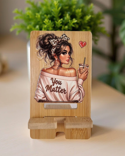 מעמד לנייד - דמות עם קוקו גבוה שיער חום