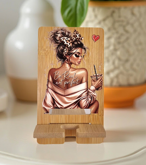 מעמד לנייד - דמות עם גב חשוף וקפה