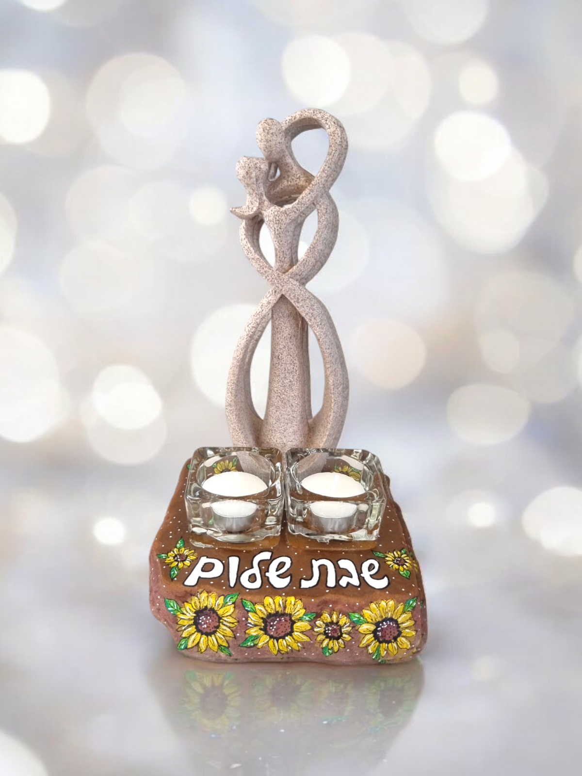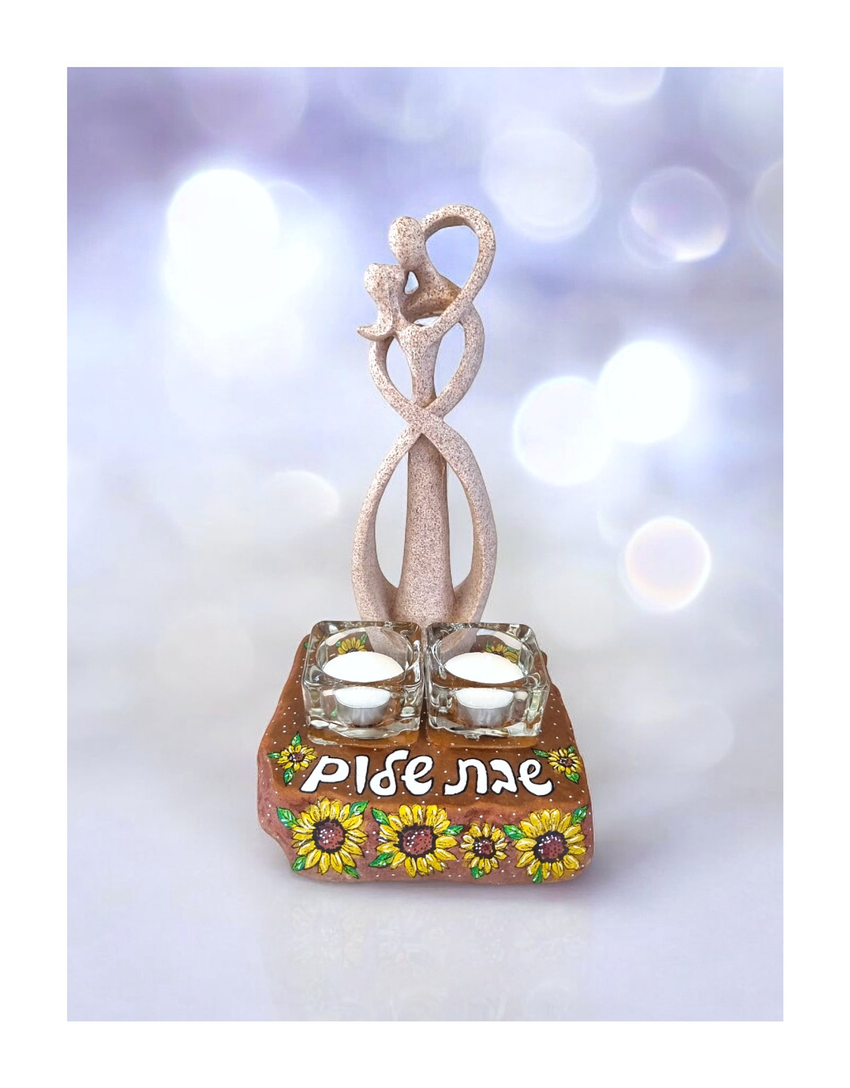 מתנה לחתונה או ליום נישואין - פמוטי שבת מעוצבים עם פסלון זוג