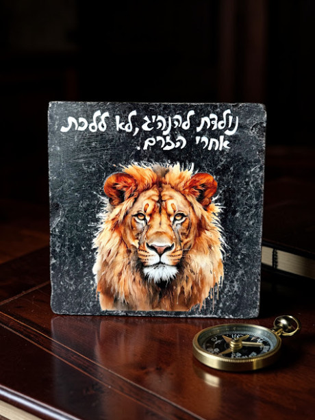 מתנה לגבר עוצמתי - אבן השראה עם איור אריה ומשפט מחזק