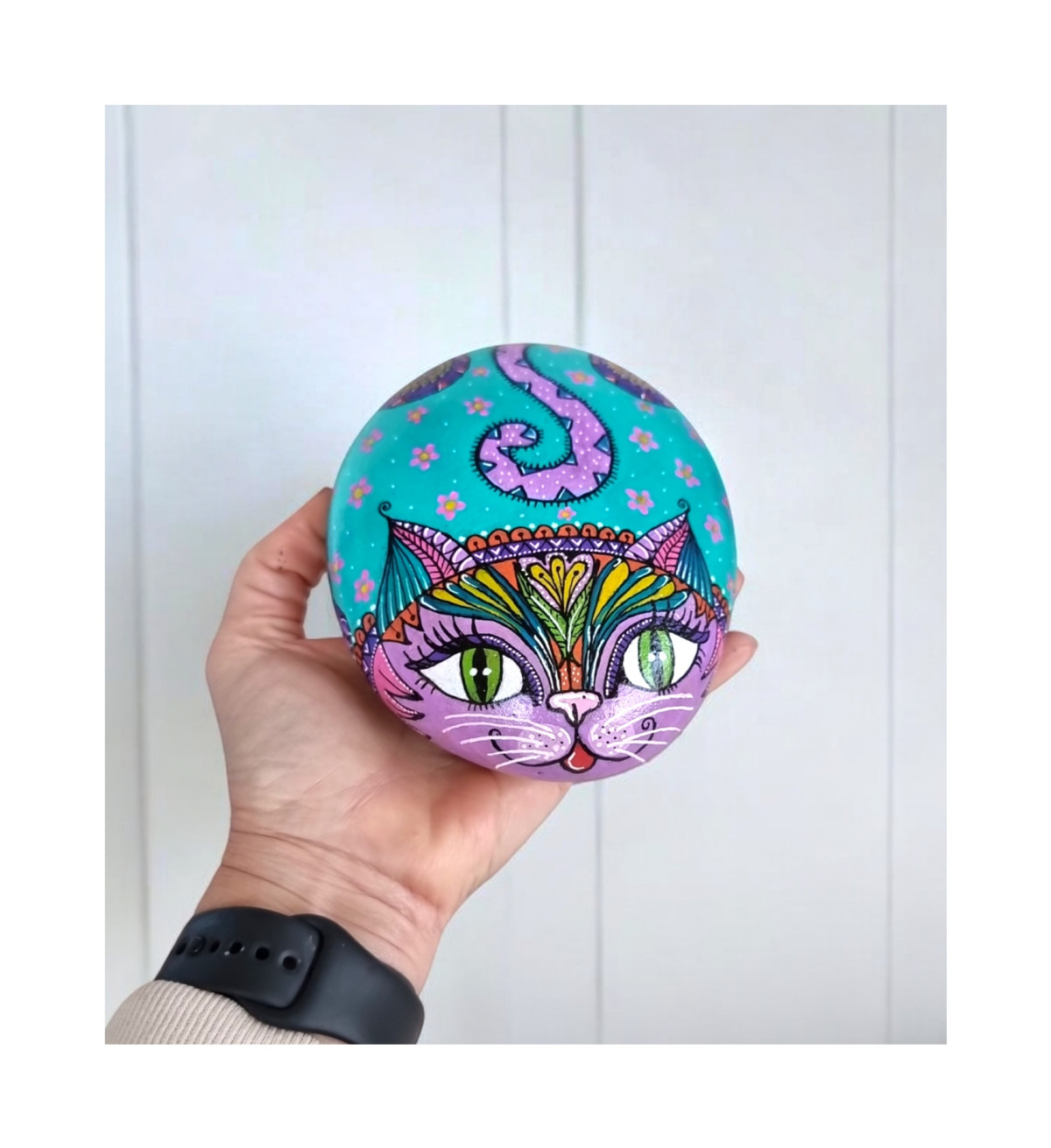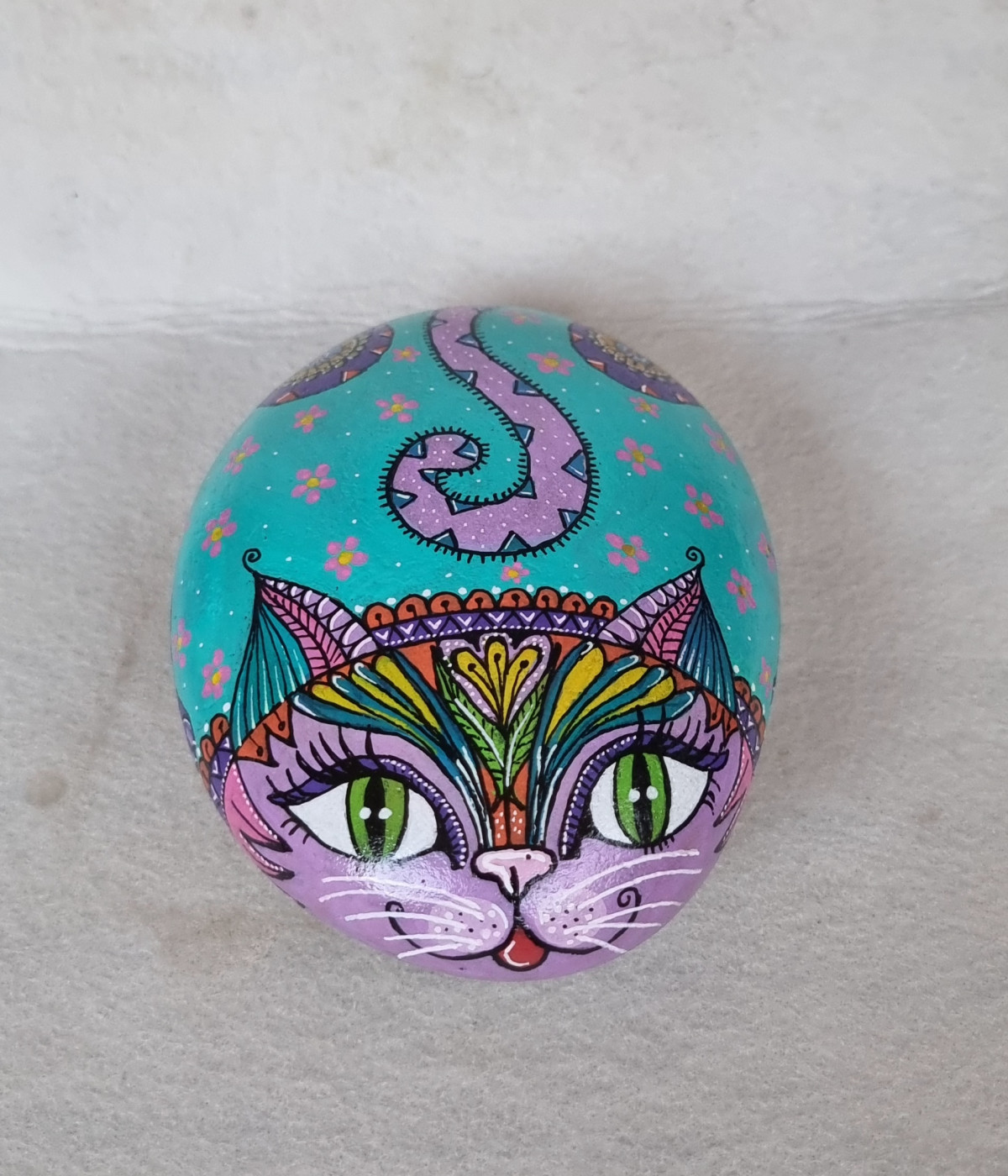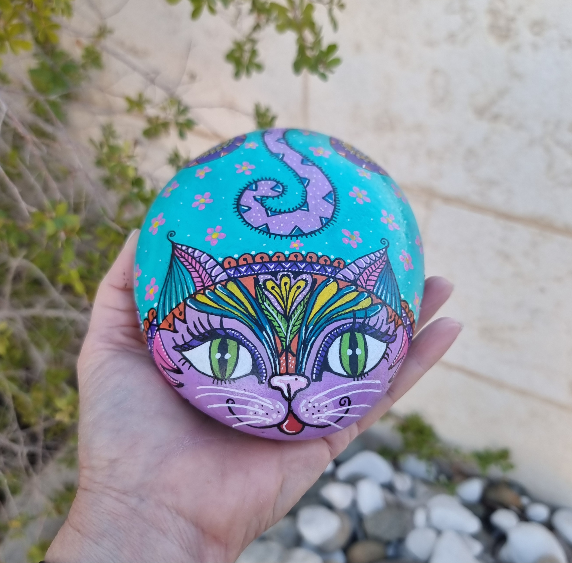 אבן מצוירת חתול צבעוני – אבן אמנותית